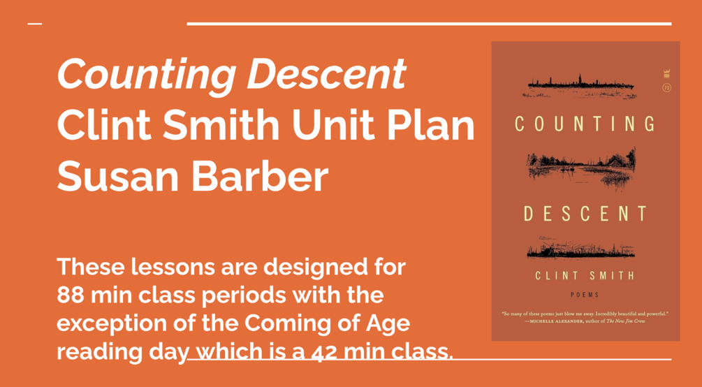 This unit include 9 slide decks which are ready to be used for 9 different instructional days for the collection of poems. The lessons include - introduction to the collection, odes and black boy poems, structure, protest poetry, Katrina poems, coming of age poems, a mentor poem activity, and a Clint Smith choice board.